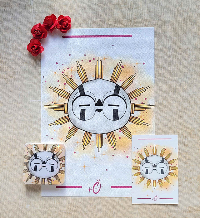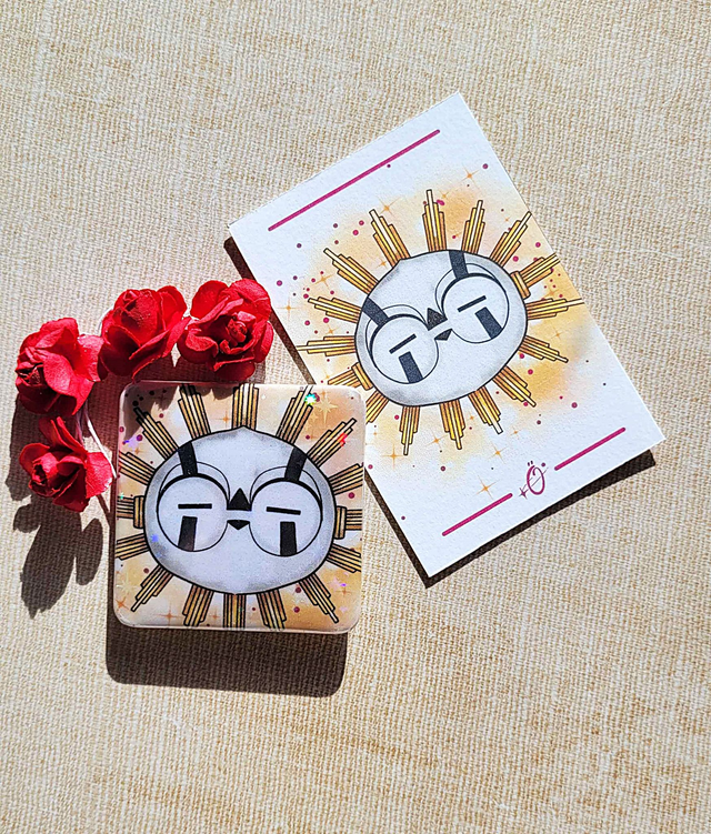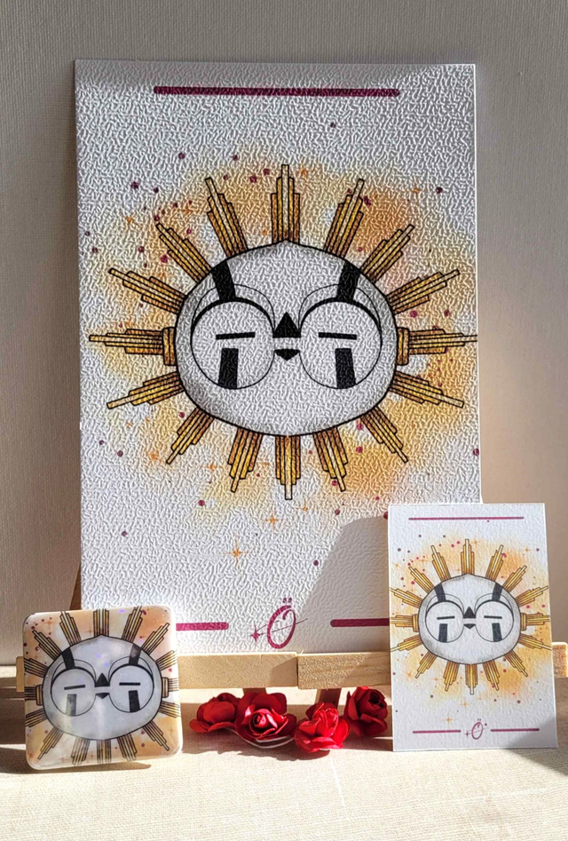 Contient une illustration A5, un badge format spécial holographique (sa brille !) et sa petite carte chibi brillante !
